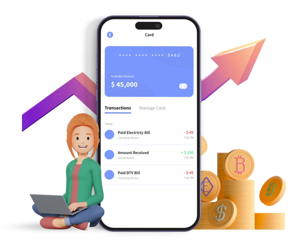 At Idea Usher, our team excels in fintech software development. It offers services like custom fintech applications, accounting information systems, intelligent CRM solutions, robotic automation, and a digital wallet with dedicated features. We offer financial solutions like Smart Budgeting, Mobile banking, Loan management, Crypto and DeFi Apps, Financial Marketplaces, Stock trading apps, and more.
