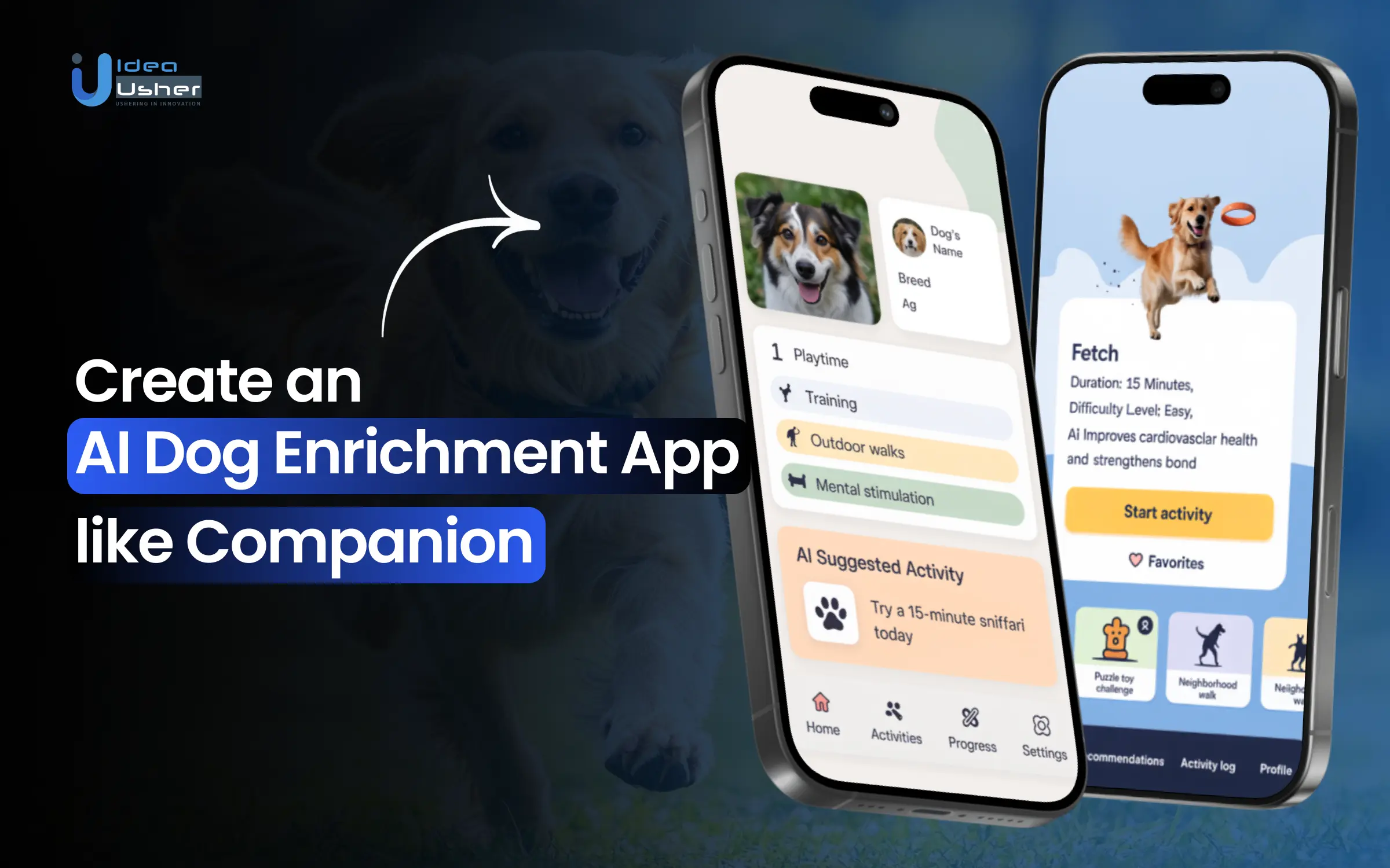 At Idea Usher, we don’t just code; we innovate. We help you transform the concept of AI-driven dog enrichment into a market-ready product that delivers real value, reducing pet anxiety, providing owner peace of mind, and creating a powerful new revenue stream.