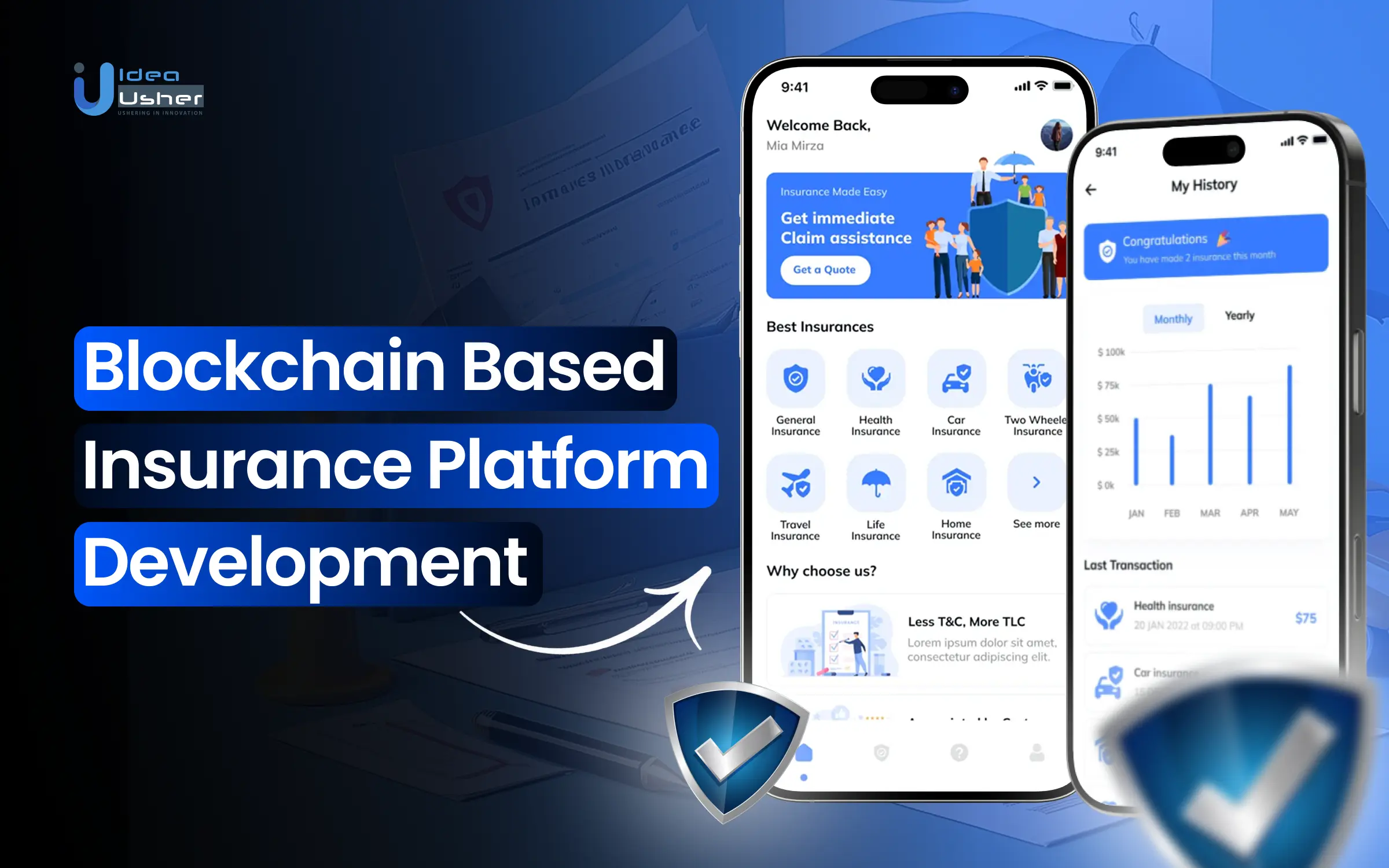 Idea Usher, with over 500,000 hours of coding experience, specializes in building custom blockchain insurance platforms. We help streamline operations, reduce fraud, and build trust using blockchainās transparency and security. From smart contracts to user-friendly interfaces and regulatory compliance, we handle it all to deliver scalable solutions that boost efficiency and growthāpartner with us to unlock blockchain’s potential for your insurance business.