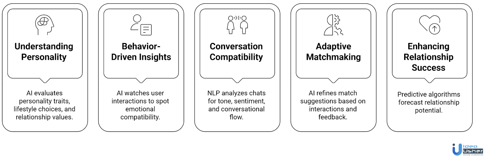 At IdeaUsher, we specialize in creating AI-driven dating platforms that prioritize meaningful connections and personalized experiences. Our team ensures your app is secure, intelligent, and scalable to meet the needs of modern users.