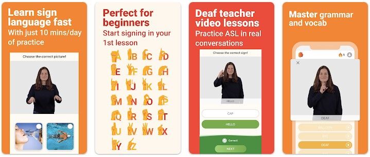 - The app offers short and engaging lessons created by Deaf instructors. Users begin learning sign language immediately through these lessons.
