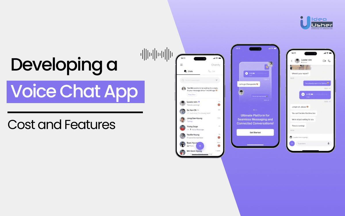 Idea Usher, with over 500,000 hours of coding expertise, offers comprehensive voice chat app development services. Our team specializes in building scalable, high-performance apps using the latest technologies, including WebRTC, VoIP, and cloud-based infrastructure. We can help you make a feature-rich app with crystal-clear audio quality, real-time communication, and robust security. Let Idea Usher turn your vision into reality with a world-class voice chat app.