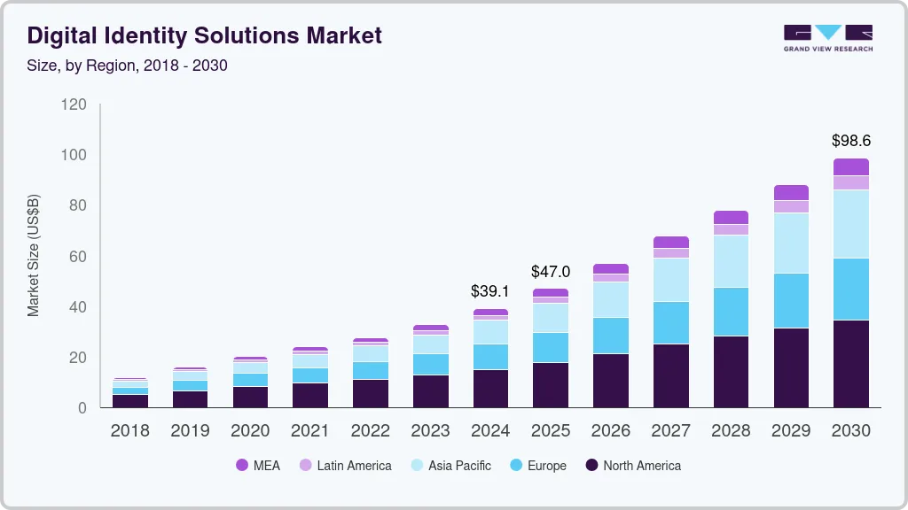 The global digital identity solutions market was valued at USD 39.07 billion in 2024 and is expected to reach USD 98.64 billion by 2030, with a CAGR of 16% from 2025 to 2030. This growth is fueled by rising cybersecurity concerns, the demand for more efficient digital services, and supportive government policies.