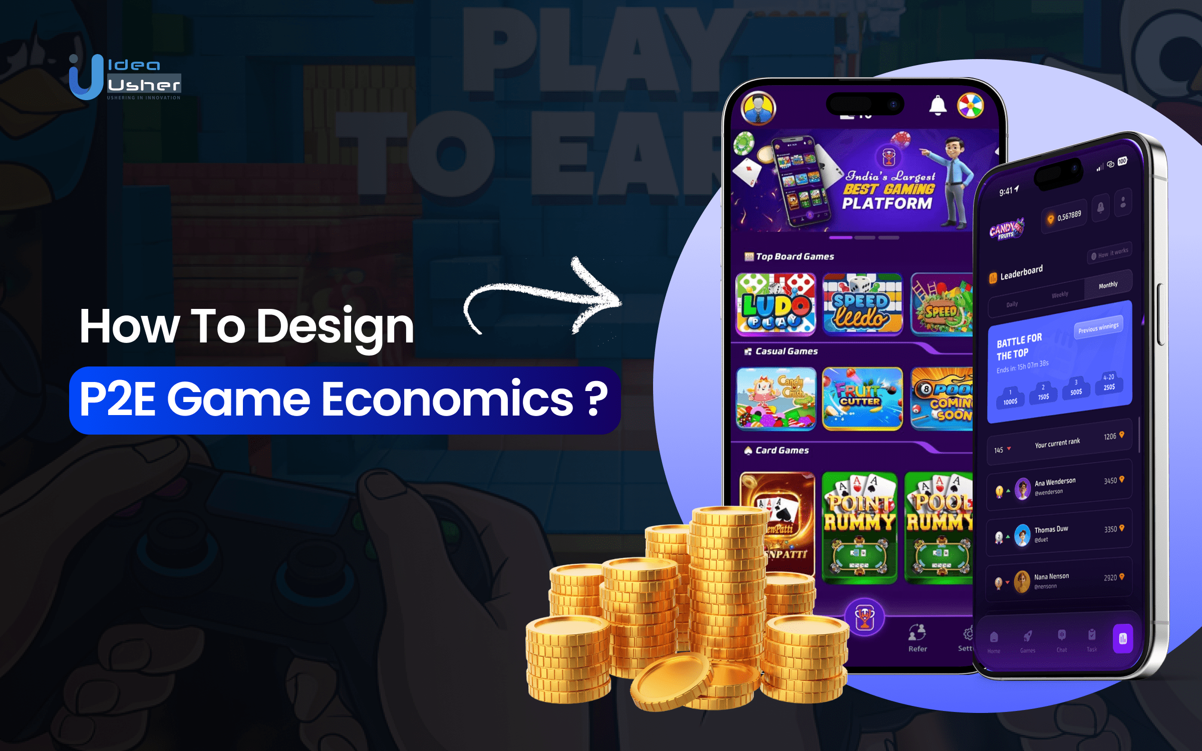At Idea Usher, we specialize in creating engaging and profitable P2E games. With over 500,000 hours of coding experience, our team is skilled in blockchain, smart contracts, and game design. We’ll work closely with you to develop a P2E game that captivates players, rewards their involvement, and drives long-term revenue. From crafting solid tokenomics and integrating NFTs to refining gameplay and in-game economies, we’ll ensure your game stands out in the competitive P2E market. Let’s build the future of gaming together!