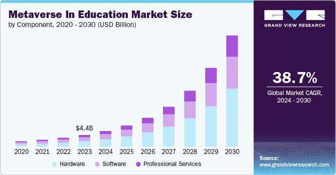 According to GrandViewResearch, the global metaverse in the education market is growing fast, reaching about USD 4.38 billion in 2023 and expected to hit USD 41.62 billion by 2030, with a strong annual growth rate of 38.7%. This growth is fueled by the rising demand for interactive, hands-on learning, and advancements in virtual and augmented reality.