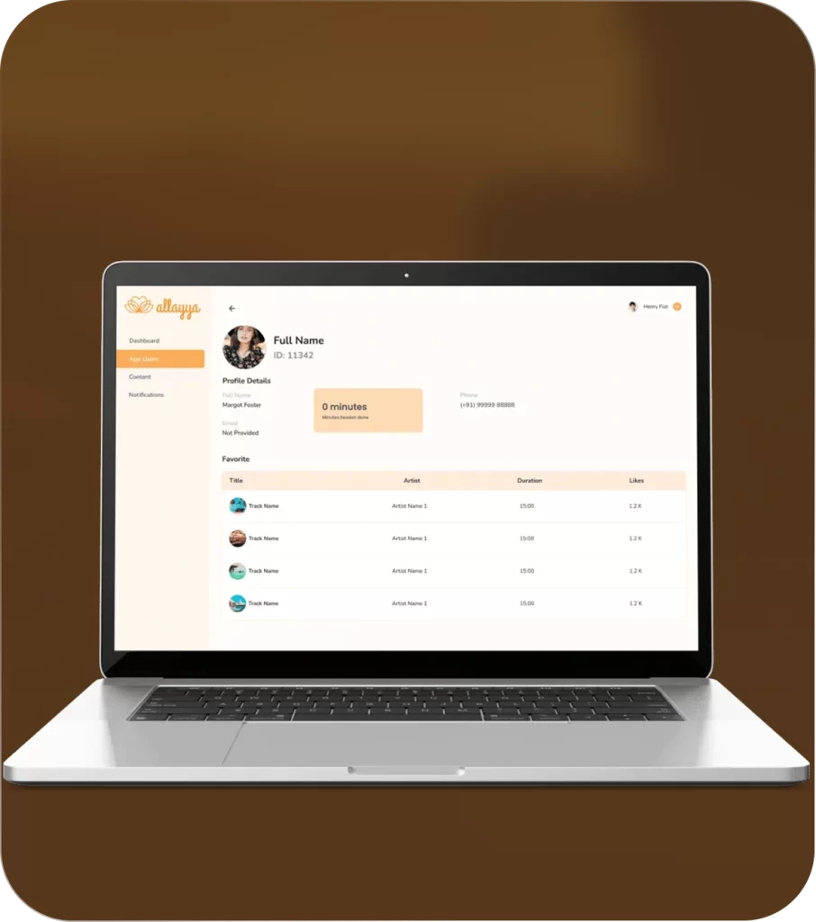 The best solution for distributing relaxing tracks from the Allayya app was to create a highly efficient content management system. So, Idea Usher suggested building an admin panel and the Allayya app separately to help our client manage their music content efficiently. Also, the panel gives them overall transparency and control of their app by allowing them to manage their content and users.